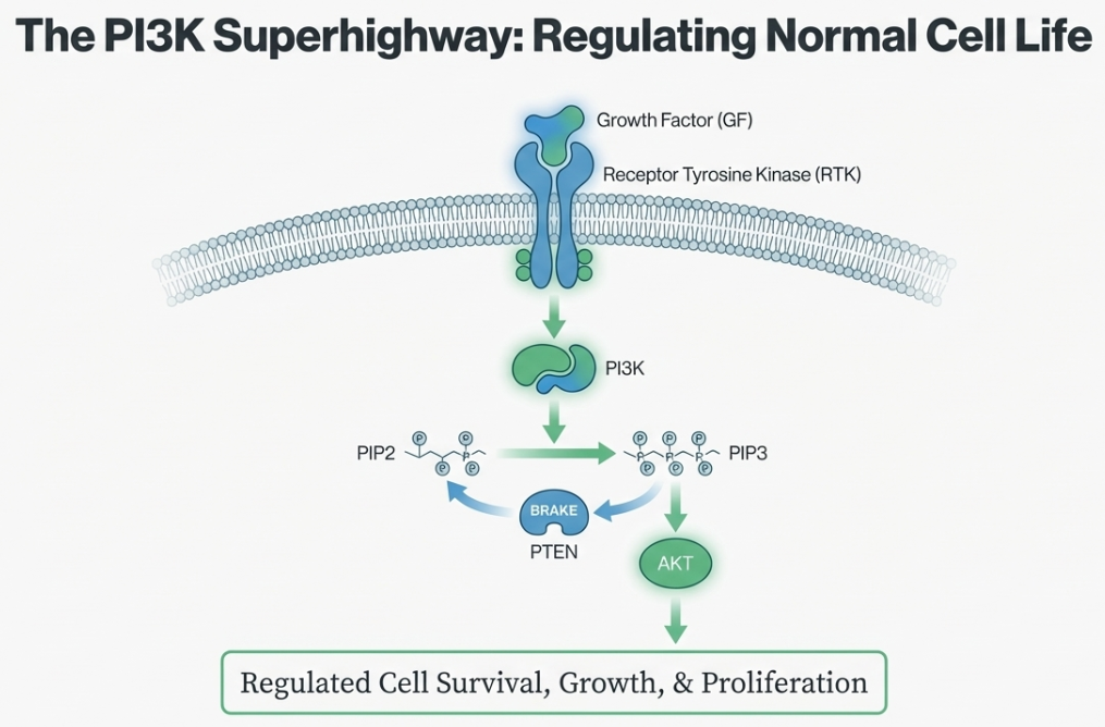 此通路一旦異常或持續性活化,即與癌症、糖尿病及自身免疫疾病等多種重大疾病密切相關,因此被視為藥物研發與精準醫療中最重要的訊號靶點之一。