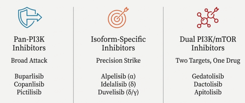 • 廣泛性: 這種結合作用發生在第一類 PI3K 的所有四種亞型(α、β、γ、δ)上,使其能廣泛地抑制該家族酵素的活性,,。