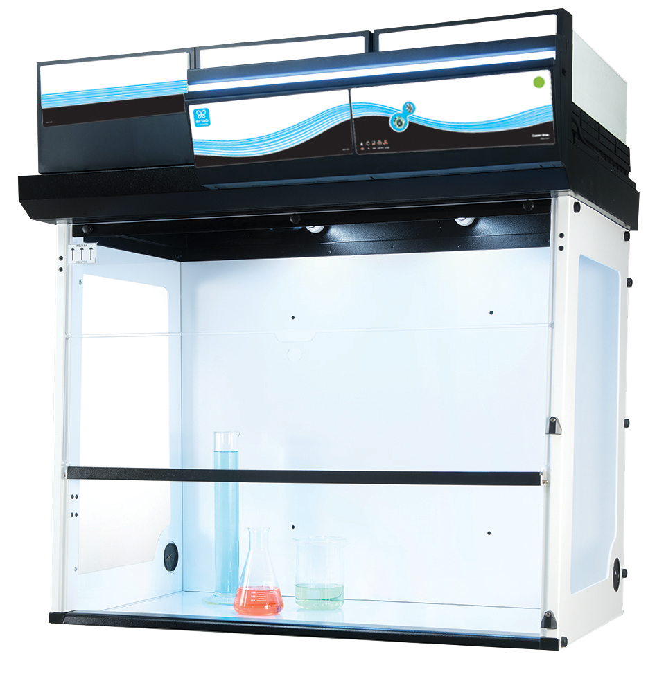 - 「無風管 (Ductless)」設計可直接放置於任何實驗室區域,安裝僅需電源。